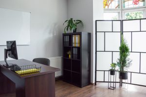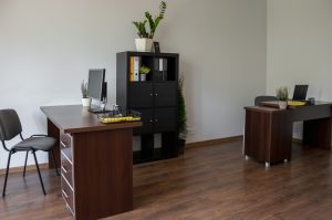 biuro wyposażone w sprzęt i meble biurowe dla 3 osób