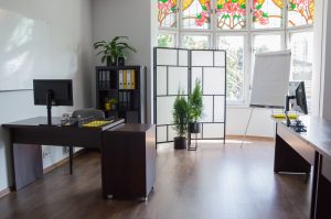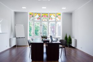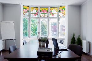 Połączenie nowoczesnej elegancji wnętrza, wraz z niewspółczesnym kolorowym witrażem tworzy stylową przestrzeń dla firm ceniących sobie oryginalność. Biuro liczy 30m2 i idealnie sprawdzi się dla 4-5 osobowej firmy.
