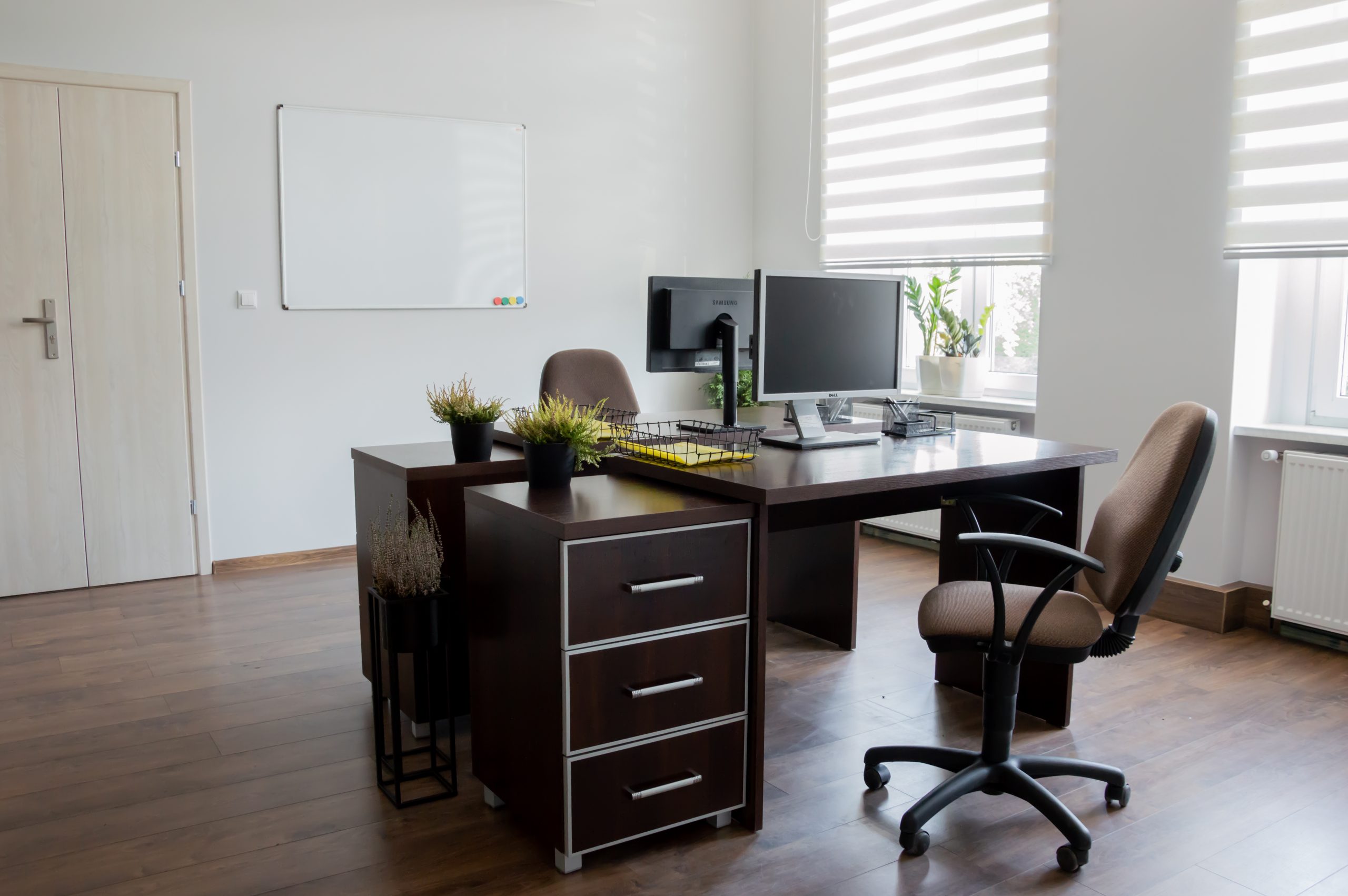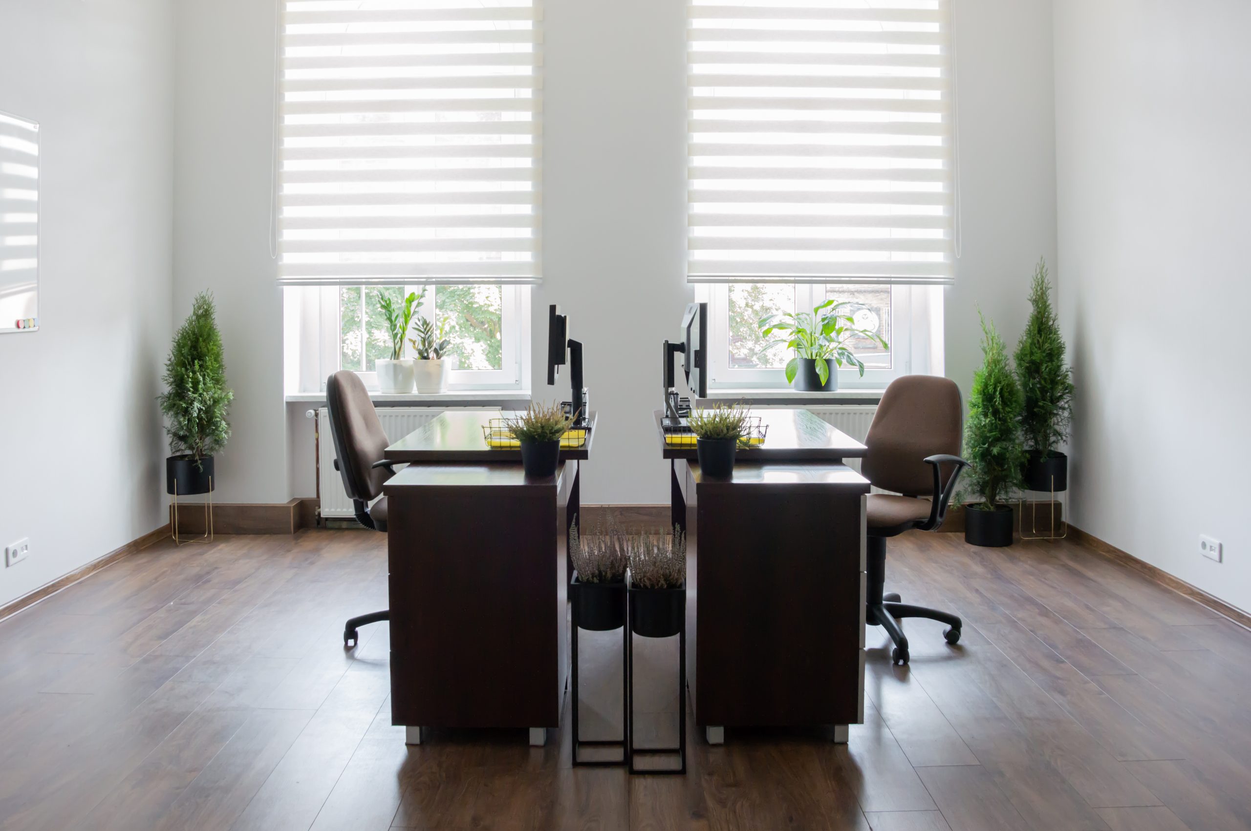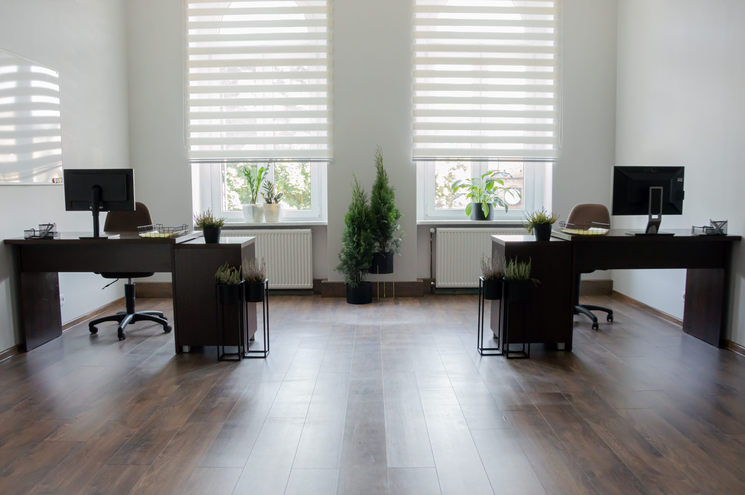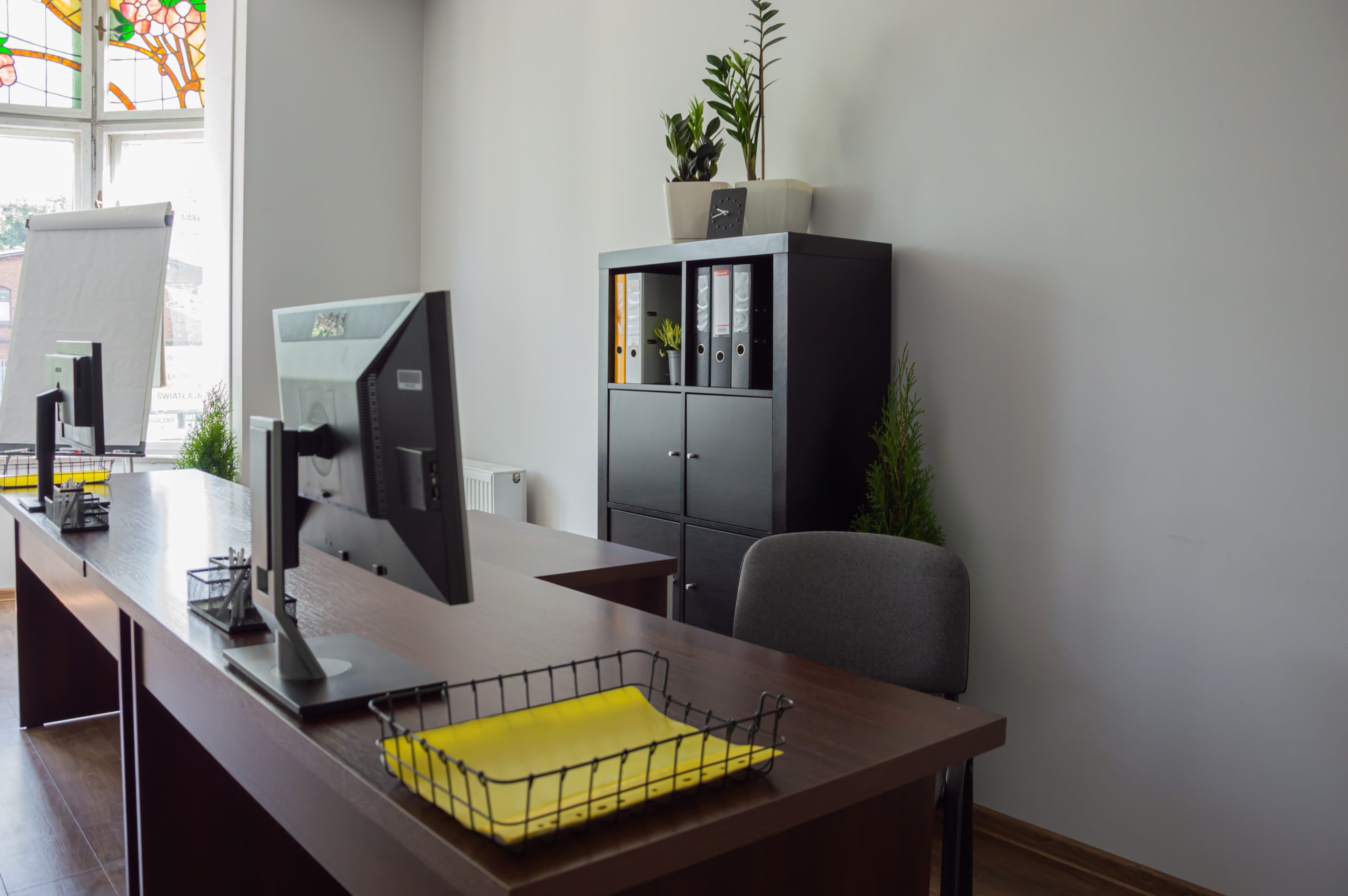 biuro wyposażone w sprzęt i meble biurowe dla 3 osób