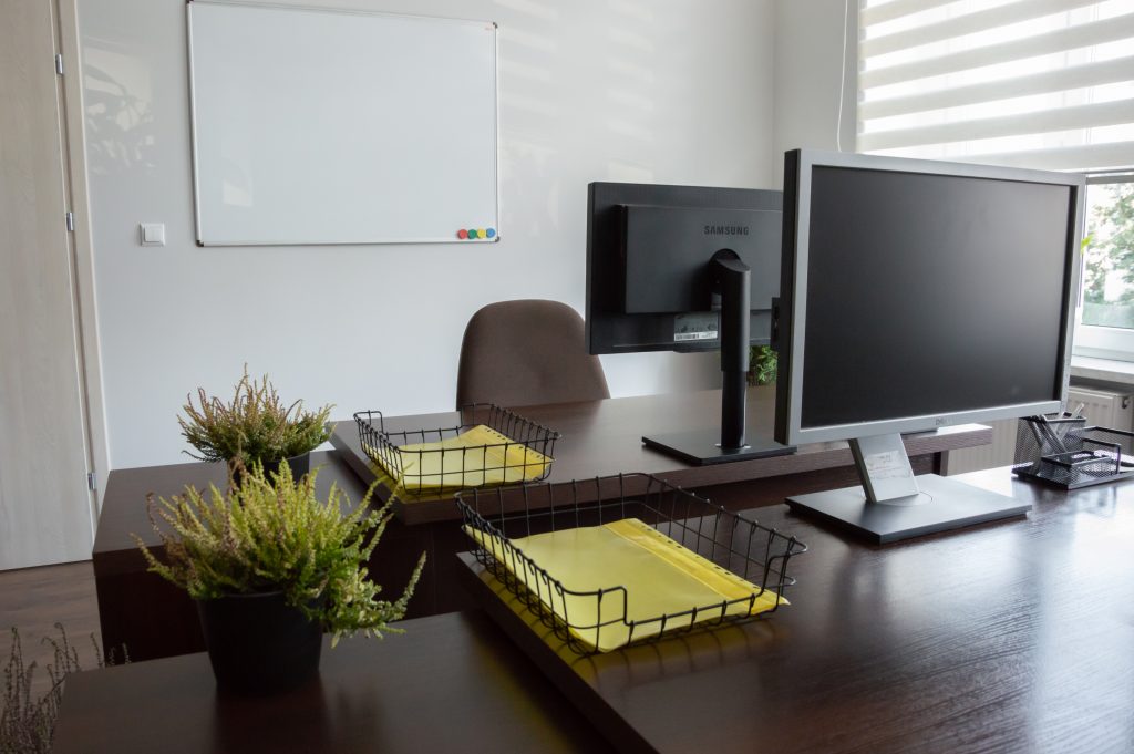 biuro wyposażone w sprzęt i meble biurowe dla 4 osób