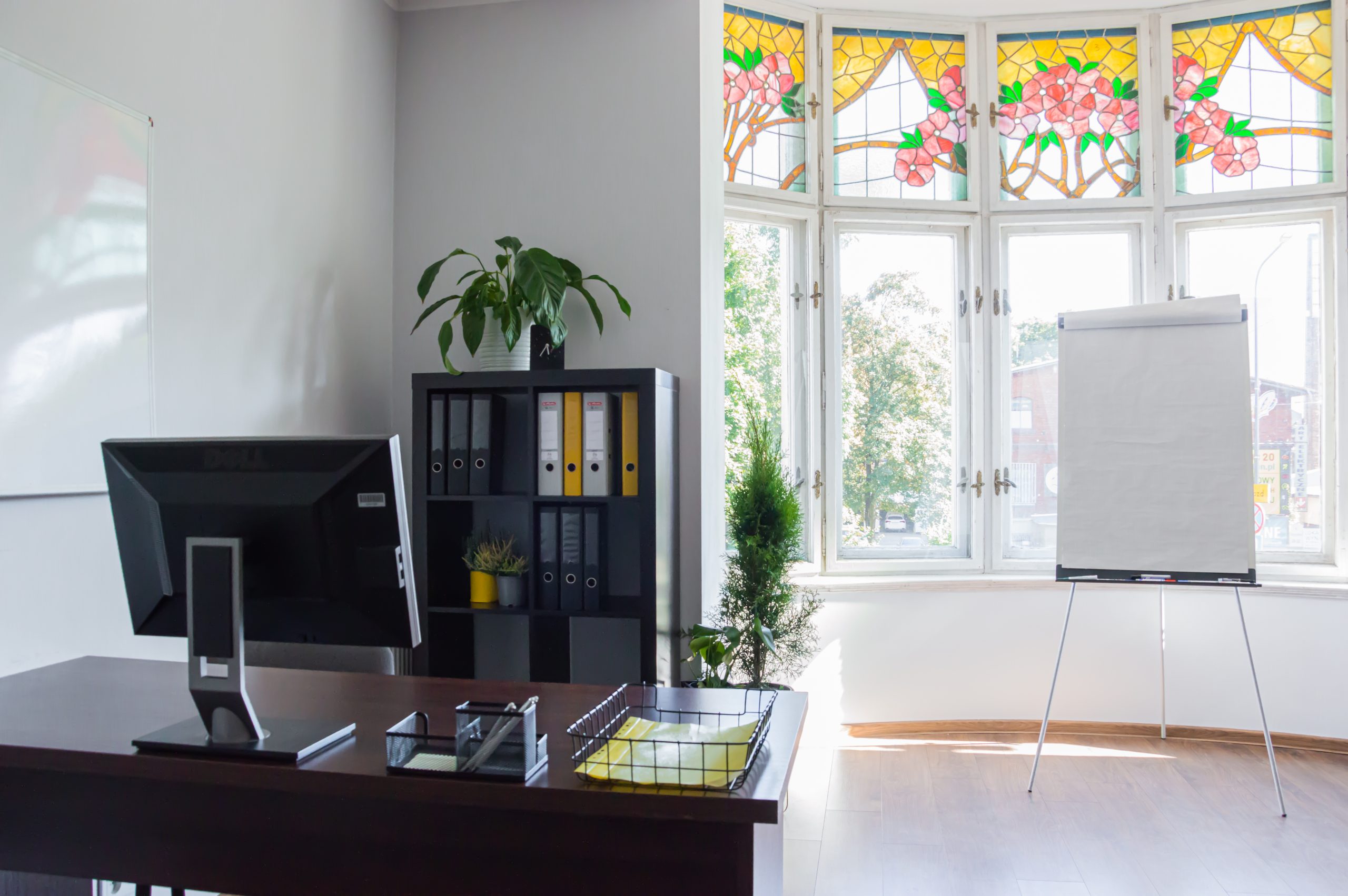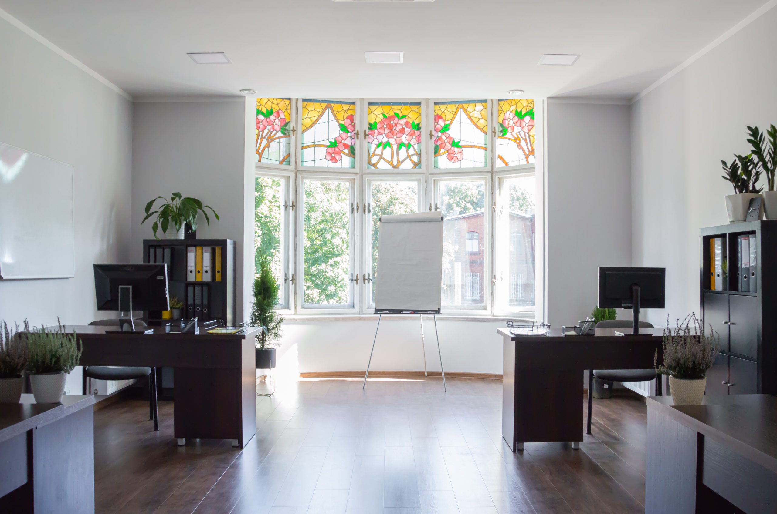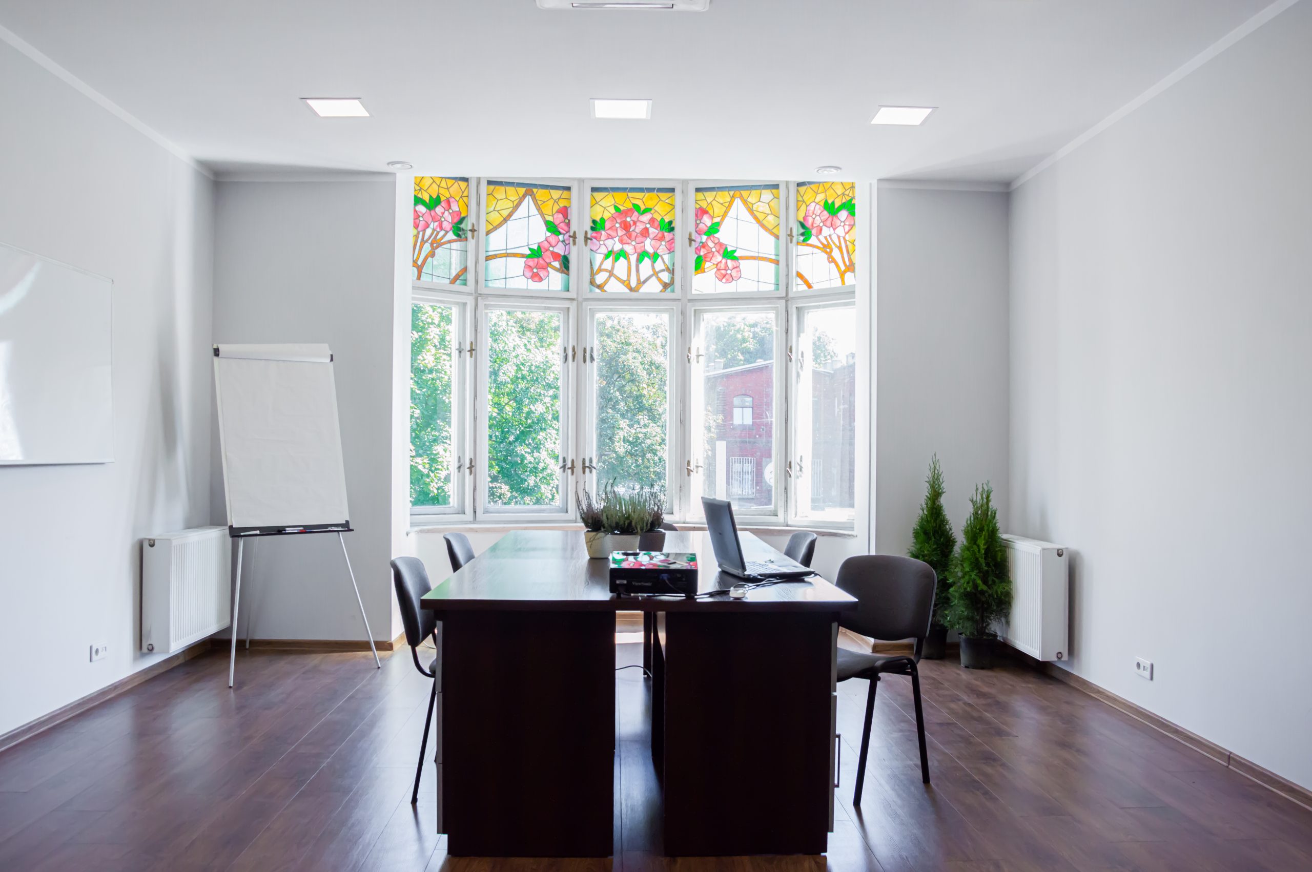 Połączenie nowoczesnej elegancji wnętrza, wraz z niewspółczesnym kolorowym witrażem tworzy stylową przestrzeń dla firm ceniących sobie oryginalność. Biuro liczy 30m2 i idealnie sprawdzi się dla 4-5 osobowej firmy.